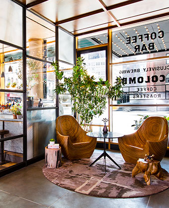 As a four-star Kimpton hotel in vibrant Chelsea, Kimpton Hotel Eventi says hello with a custom-designed living room that serves as a hip hub to all things awesome. Like our L'Amico restaurant and Back Bar lounge, both under the culinary genius of world-traveler Laurent Tourondel. Brooklyn-based design firm Crème masterminded our surroundings, including a stacked felt reception desk that pays homage to the nearby Garment District.
